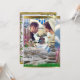 Esses belos cartões de "salve a data" à beira-mar são a maneira perfeita de anunciar o seu casamento. Os cartões apresentam uma foto personalizada da noiva e do noivo emoldurada em uma fina linha de ouro. A foto é colocada contra um fundo de flores roxas e madeira flutuante, e a data do evento é impressa abaixo da foto. Os nomes do noivo e da noiva também são impressos no cartão.