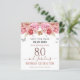Brilho feminino, fundo rosa milenar, com tipografia de nome em letra cursiva sofisticada. Modelo de design feliz 80 e aniversário fabuloso. Rosas cor-de-rosa e borda superior de borboleta. Ótimo para celebrações de 80 anos. Lembrete de celebração para salvar a data.