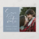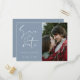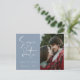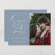 Convide amigos e entes queridos para o casamento com este convite minimalista e moderno em azul desbotado. Apresenta caligrafia “Save the Date” e uma foto do casal que você pode personalizar. Detalhes adicionais do casamento podem ser escritos no verso.