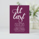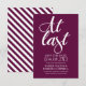 Convite de Salvar a Data Por Fim. Perfeito para Casamentos ao Ar Livre! Use as opções Personalizar para alterar texto, cores, imagens, etc., de acordo com as suas necessidades. Remova facilmente a imagem listrada no verso do convite para um visual mais clássico. Se tiver alguma dúvida sobre este design, entre em contato conosco. Outras cores disponíveis.
