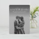 Compartilhe as notícias de seu noivado e casamento com esta vertical de uma foto, salve o cartão de data com um tratamento elegante, em branco, que fica no topo de uma foto vertical. O tipo tem espaço para nomes longos, além de data de localização e outras informações para amigos e familiares, como um site. A parte de trás é uma sombra neutra com um padrão sutil de textura. A cor pode ser ajustada clicando em "Personalizar".