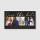na moda elegante guarde a data, caligrafia negra minimalista do ouro, imã de colagem de três fotos do casamento.