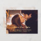 Este anúncio de casamento Save the Date personalizável apresenta uma tipografia em estilo caligráfico dourada-amarela que não é personalizável. No entanto, o texto abaixo contendo os nomes, data e local da cerimônia são. Você pode personalizar este cartão postal alterando a foto do casal atual e inserindo uma foto do casal pretendente. Há também algum texto personalizável no verso do cartão postal. Marquei todos os modelos que podem ser personalizados com um aviso "personalize aqui". Aproveite!