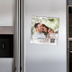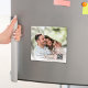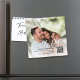 Este design apresenta um cartão magnético Salvar a Data, convite de casamento, com um elegante e simples Código QR, classe, tipografia, estilo de script de caligrafia, um modelo de foto simples, clássico e moderno minimalista Guardar a Data do casamento.