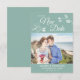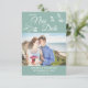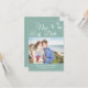 Elegante e romântico Salvem a Nova Data - cartão com fotos de adiamento do casamento, com uma lindíssima e delicada linha floral de orquídeas brancas desenhando na parte superior, sobre um fundo verde de menta clássico. Facilmente personalizável adicionando uma das suas fotos horizontais favoritas do noivado e editando os campos modelo na banda inferior verde com os seus nomes, data e local em uma fonte branca moderna e simples de todos os bonés. Para mais personalizações ou encomendas personalizadas, contacte-me livremente em acherryonthecake@hotmail.com (permita 1-2 dias úteis). Este cartão Guardar a Data faz parte da coleção "Orquídeas Delicadas - suite de casamento Mint Green" com muitos itens de coordenação para criar um pacote de casamento único.