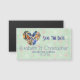 Salve a data dos cartões de visitas magnéticos. Personalize com o nome da noiva e noiva e a data do casamento. Com um design de penas de aquarelas bonitinho em forma de coração. Definido em um fundo verde de menta estilo vintage com bolinhas rosa e brancas desbotadas. Romântico e caprichoso.