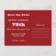 Uma bola de futebol em um fundo azul escuro enfeita este cartão-postal de 75° Festa de aniversário, único e divertido, "Salvar a Data". O verso deste anúncio tem letras brancas sobre um fundo vermelho. Você pode facilmente alterar o texto para nome, idade, evento, data etc. Os fãs do esporte vão adorar! Todos os Direitos Reservados © 2015 Alan & Marcia Socolik.