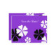 Flores pretas e brancas em um fundo roxo escuro decoram este cartão postal "Save the Date" sofisticado. O verso tem letras brancas no mesmo design de fundo. Muito sofisticado! O texto padrão é para um aniversário de 65 anos, mas você pode facilmente alterar o texto para nome, idade, data, local, etc. O rótulo de nome e endereço correspondente é o produto Zazzle 106641237613375734. Todos os direitos reservados © 2015 Alan & Marcia Socolik.