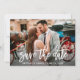 Tendência de Script de Pincel Moderno Salve o Cartão com fotos do Casal de Noivado de Data - Script Branco