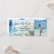 Destino Cartão de Embarque para Casamento na Praia Bilhete Dourado Avião Salvar a Data com ilustração de praia de palmeiras em aquarela, México ou qualquer outro local tropical. Adicione seu Código QR e foto