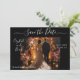 Escuro e elegante Guarde o Convite de Casamento de Data. Este é um convite para Salvar a Data elegante. Simples, mas atordoante, com noiva e noivo num belo cenário de casamento.