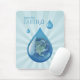Mostre seu amor para nosso planeta azul bonito - design do mousepad com a terra em uma gota da água e em um slogan ambiental.