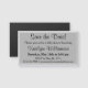 Azuis na moda e as cinzas salvar o lembrete do cartão magnético do chá de fraldas da data. Personalize com sua informação pessoal. Clique "personalizam-no!" abotoe para mudar o estilo de pia batismal, o tamanho do texto, a cor de texto e o mais!
