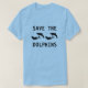 Uma silhueta gráfica de golfinhos pela artista/designer Charmaine Paulson sobre uma variedade de produtos. A t-shirt tem o texto personalizável Salvar os golfinhos.