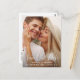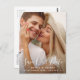 Um simples design de cartão de casamento para salvar a data com letras cursivas brancas elegantes. Sinta-se à vontade para personalizar a imagem do casal e o texto.