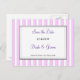 Anúncios de noivado ou festa Salve a Data com um simples padrão de fundo listrado de rosa claro e escuro sobre branco com letras cursivas personalizadas e letras maiúsculas. Clique em Personalizar para alterar as fontes, tamanhos, cores de fundo e mais, até salvar seu design para mais tarde.