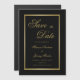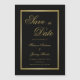Anuncie seu casamento com estilo com este cartão magnético personalizado de salve a data, apresentando caligrafia dourada com a data do seu casamento e outros detalhes para personalizar, bordeado por uma moldura dourada brilhante em um fundo preto simples. Projetado por Susan Coffey.