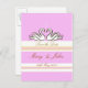 Um cartão bonito e romântico em rosa com listras brancas e dois cisnes brancos formando um coração. Lindo cartão de anúncio de casamento.