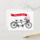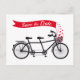 Salve a data, com bicicleta tandem e corações vermelhos, ilustração para convite de casamento, cartão, adesivo