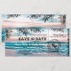 Prepare-se para o casamento de verão dos seus sonhos! À medida que as temperaturas sobem e a temporada de praia se aproxima, mais e mais casais estão optando pelo clássico casamento de destino. Com um cartão de embarque de salve a data de destino de praia, os casais podem garantir que seus convidados recebam o convite com estilo. Esses cartões de embarque de salve a data de destino de praia apresentam um cenário de praia de palmeiras tropicais, luzes cintilantes e um modelo de texto moderno.