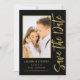 Salve a data em que as placas modernas de casamento Douradas de Na moda preto apresentam um fundo preto com a sua foto personalizada. Personalize com seu texto editando o texto nas caixas de texto fornecidas. Projetado para você por ©Evco Studio www.zazzle.com/store/evcostudio