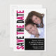 Anuncie seu futuro casamento com nossos Cartões de Anúncio de Salve a Data com um texto preto ousado e rosa quente e espaço para moldura de foto. Basta adicionar as informações do seu casamento e foto e você estará pronto! Selos postais e selos de envelope correspondentes disponíveis em nossa loja