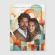 Adicione sua foto favorita a este cartão magnético de Salve a Data. Cartão magnético bonito, moderno, geométrico, em tons de rosa, pêssego, laranja, verde, azul turquesa e azul. A fonte pode ser alterada ao seu gosto.