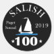 Celebre sua participação no cruzeiro de 22-28 de junho Salish 100 de pequenas embarcações exibindo adesivos S-100 no seu barco, janelas de carros, pára-choque ou outros locais com esta folha de seis adesivos brilhantes de 3 polegadas de diâmetro.