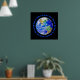 Pegue um poste e salve nosso planeta - poster preto com uma renderização colorida e artística do hemisfério oeste cercada por texto azul.