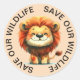 Palitos redondos com uma fotografia fofa de um Leão no meio. Salve o Wildlife impresso em um círculo ao redor das bordas. Autocolantes ambientais e verdes. Excelente para todos os seus projetos de Papel de carta, artesanato ou escola. Coloque suas lancheiras ou garrafas d'água.