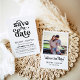 Este salve o dia é um design atemporal que se ajusta a eventos boêmios, retrô, minimalistas ou modernos. Você pode facilmente alterar o texto e a cor do fundo para combinar melhor com o seu tema. Adicione facilmente sua própria foto para notificar seus entes queridos sobre o seu dia especial! Clique no botão "Editar Usando a Ferramenta de Design" para editar!