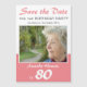 Salve a placa do ímã de fotos com Festa de aniversário de data com uma foto personalizada - adicione sua foto e personalize-a com suas informações. O cartão é cor-de-rosa com script de tendência.
