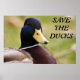 Pato amarelo e azul com palavras dizendo para salvar os patos faz um bom poster.