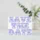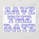 Fonte vírgula maravilhosa em azul com a mensagem "Salvar a data" preenchendo todo o espaço na frente da placa. Na moda e design original, se adequariam a um tema tradicional, assim como a um tema moderno e peculiar. Outras cores estão disponíveis no meu compro na seção "Slogan".