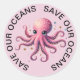Palitos bonitos com uma fotografia fofa de um polvo no meio. Salve os oceanos impressos em um círculo ao redor das bordas. Autocolantes ambientais e verdes. Excelente para todos os seus projetos de Papel de carta, artesanato ou escola. Coloque suas lancheiras ou garrafas d'água.
