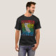 The T-shirt design saying "1850," "California" and "San Diego" is colored black with red, yellow, green, blue, black, grey and white ink in it. It is made out of 100% cotton.