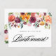 Você será minha dama de honra? Convide a família e os amigos a fazerem parte da sua festa de casamento com este cartão de pedido personalizável de festas de noivas. Apresenta uma faixa de cor d'água de flores laranja, burgundy, blush e outono vermelho. Personalize adicionando seus detalhes. Esta carta de proposta de damas de honra é perfeita para casamentos outono. Itens correspondentes estão disponíveis.