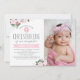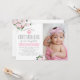 Convite de Natal personalizável com fotografia com flores cor-de-água rosa.