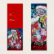 Pintura colorida, branca e artística em acrílico, Papais noeis estão tocando violino na noite de inverno nevada, coruja, ornamentos florais, plantas de inverno, bagas ocas em cores vermelho brilhante, verde, branco, azul, amarelo.