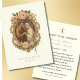 Apresentando uma bela imagem católica tradicional da imagem do mortal betrotal de Maria e José com uma fronteira decorativa de ouro acentuada por um design floral, rosário pérola e um fundo branco de renda. Uma oração está atrás da noiva e do noivo. Todo texto e fontes podem ser modificados.