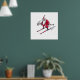 Santa Skiing posters are for skiers, ski lodges, ski clubs, coffee shops, decorators, retailers, Santa Claus collectors, print collectors, coffee drinkers, hot chocolate drinkers, and cartoon fans for the Christmas holiday season. Santa Skiing is Steamy Raimon original cartoon art.