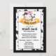 Convite para Chá de fraldas de Vaca Bonita com um adorável bezerro adorável dormindo em uma faixa amarela. Adicione os detalhes da sua festa para esta celebração muito especial. Excelente para um chá de fraldas temático fazenda,