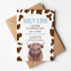 Santa Vaca! Vaca de bromo aquoso com impressão de vaca e convite de aniversário de xadrez azul claro.