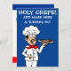 Santo Crepe! Alguém está fazendo 80 Engraçados Convidados apresentando um desenho animado de um chef francês segurando crepes. Excelente para qualquer um que tenha 80 anos. Convide convidados para uma festa de marco 80 com este convite para trocadilhos franceses. Excelente para aqueles que amam assar ou são franceses.