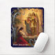 Este mousepad caracteriza uma pintura clássica do santo Joana do arco antes dos santos Michael e Catherine com uma borda moderna do estilo.