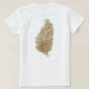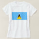 A frente desta t-shirt exibe corajosamente a bandeira Luciana Santo com o seu triângulo amarelo distintivo num triângulo preto branco fimbriado sobre um fundo azul claro. Isso é combinado atrás por um belo mapa do Santo Lúcia.