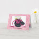 Tênis com buquê de margaridas em moldura rosa para parabéns de bebê menina