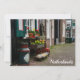 Sapatos de madeira tradicionais holandeses - klompen (tamancos), podem e vasos de flores do lado de fora, Volendam, Holanda. Volendam - uma pequena cidade que preservou a tradição das aldeias de pescadores holandeses.
