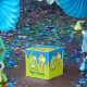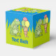 Sapo sorridente rouba um cone de sorvete com a língua. Texto personalizado.