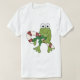 camisetas, canecas, cartões, adesivos, ímanes, chaveiros e outros roupas de férias com um sapo verde giro com uma grande bengala doce.